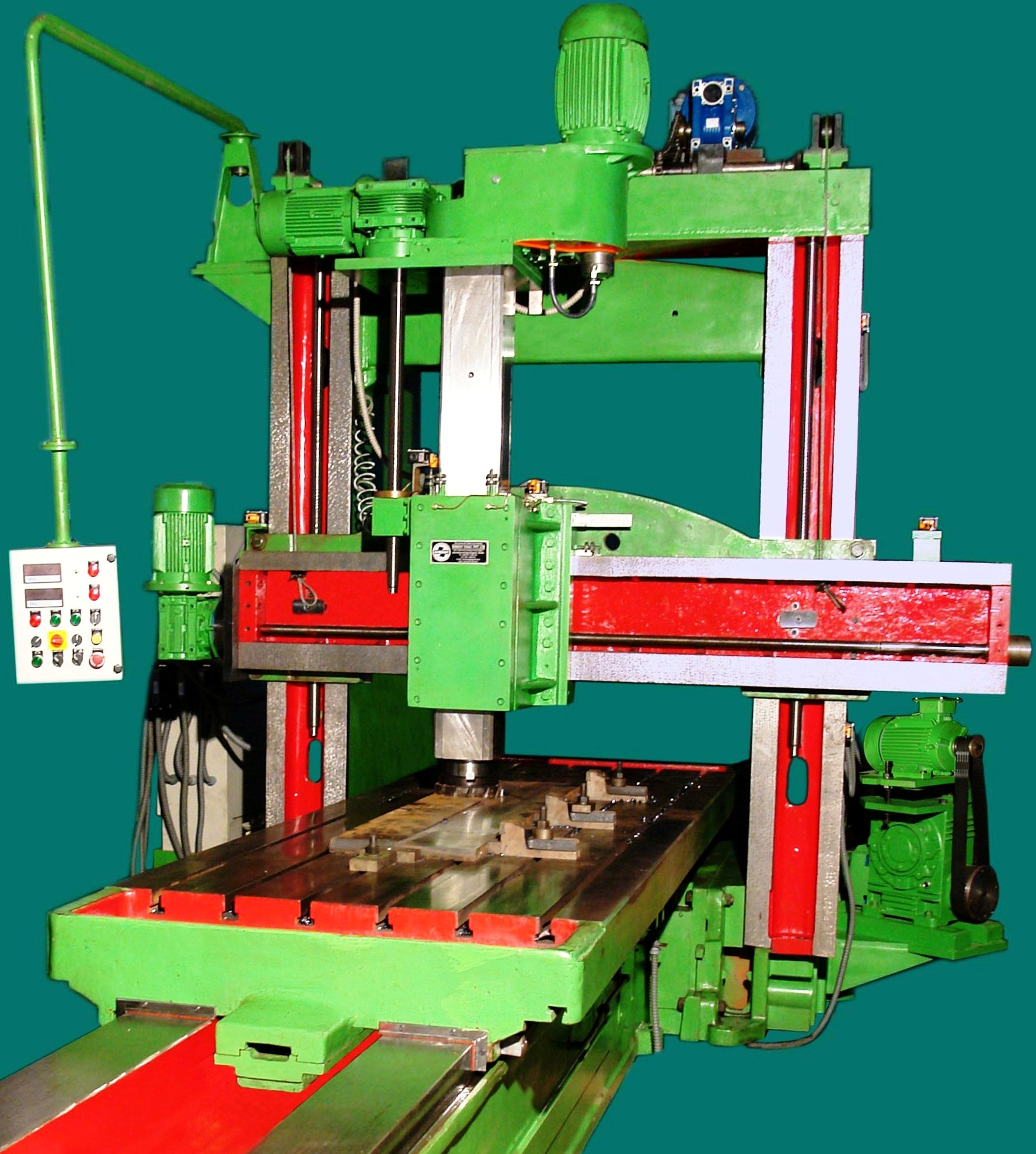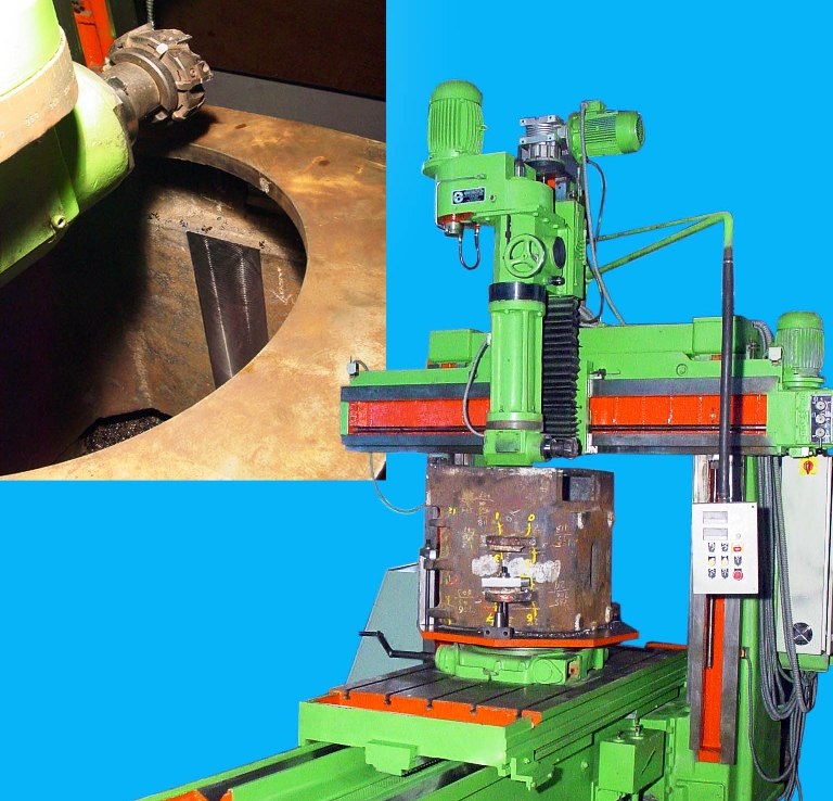 A discarded paner in dismantled condition with many parts missing is converted into in to a Plano milling SPM for machining the inner walls of the traction motor housing. A specially designed milling head reaches inner walls of the motor housing through an extended reach & a right angle attachment. An in-built 3 axes feed mechanism facilitates positioning as well and feed & depth of cut. The job clamping fixture is mounted on a rotary table for facilitating all the inner surfaces of the motor body. This converted Plano miller has saved our customer an expensive floor boring machine. Whenever required, this Plano miller can be used for all general purpose Plano miller application.
